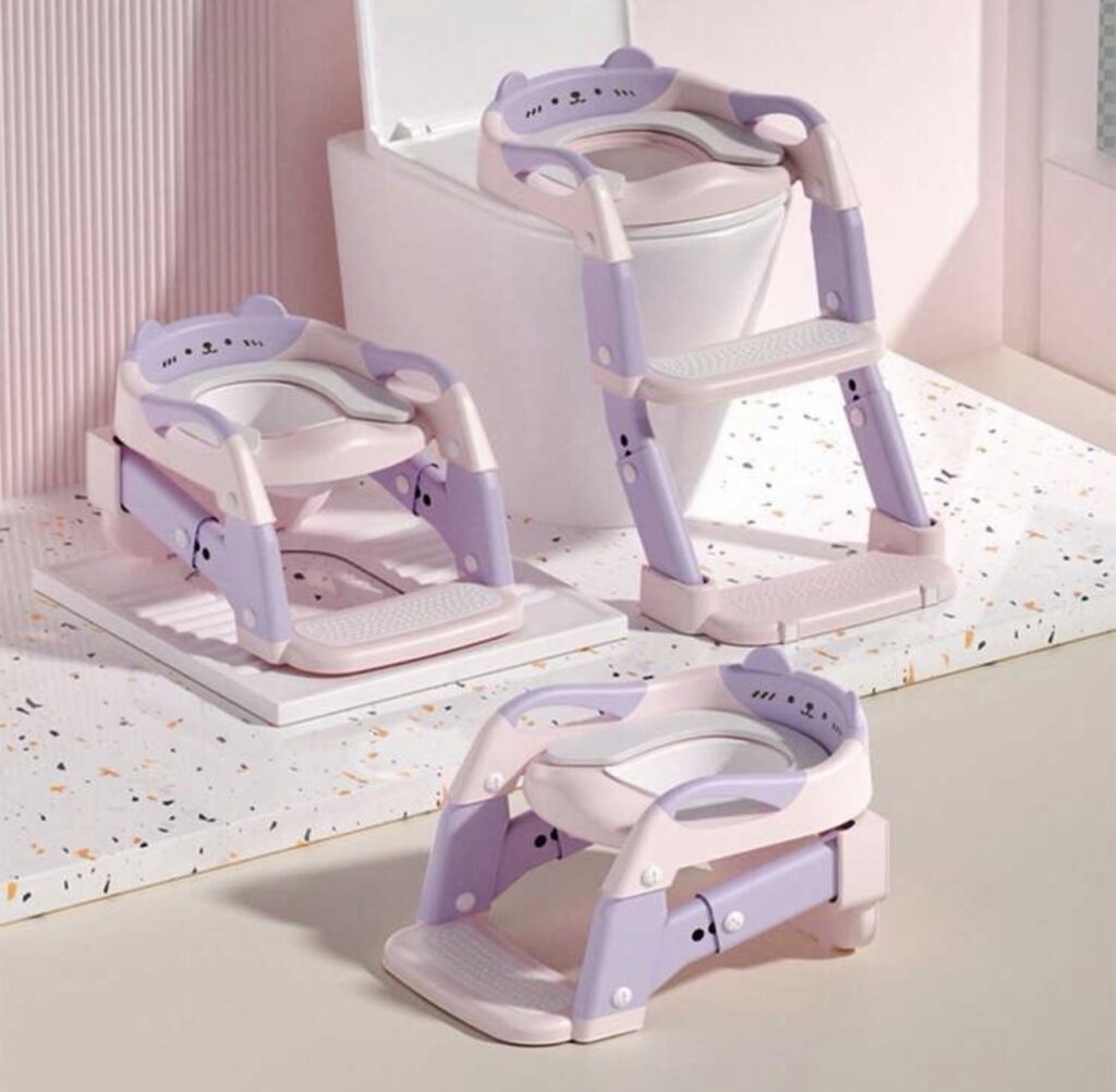 Asiento de Entrenamiento para Baño 2 en 1 con Escalones Ajustables y Bacinilla Plegable, morado