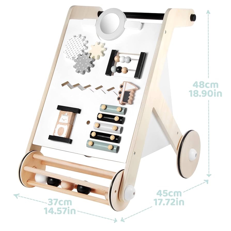 - Regalo perfecto para los pequeños: ya sea que estés buscando una bonita idea de regalo para una fiesta de baby shower o cumpleaños de 1 año, o simplemente quieras sorprender a tu pequeño con un divertido juguete de actividad educativa, este andador de actividades para bebés es la solución perfecta. También es una buena opción para Navidad y Año Nuevo