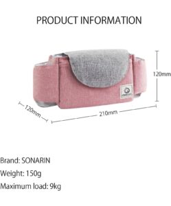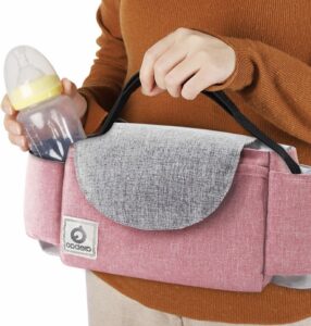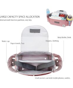 Bolsa Organizadora para Cochecito de Bebé con Portavasos – Organizador Universal para Carriola, Compartimentos Amplios y Correa Reforzada, Uso como Bolso de Mano (Rosa estampado)