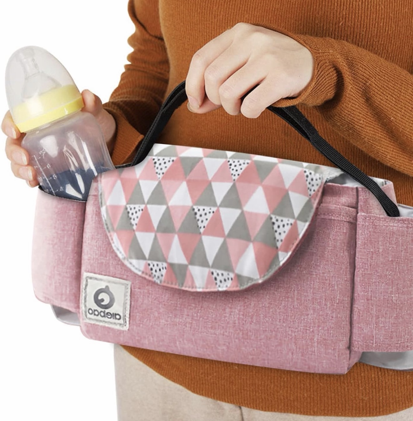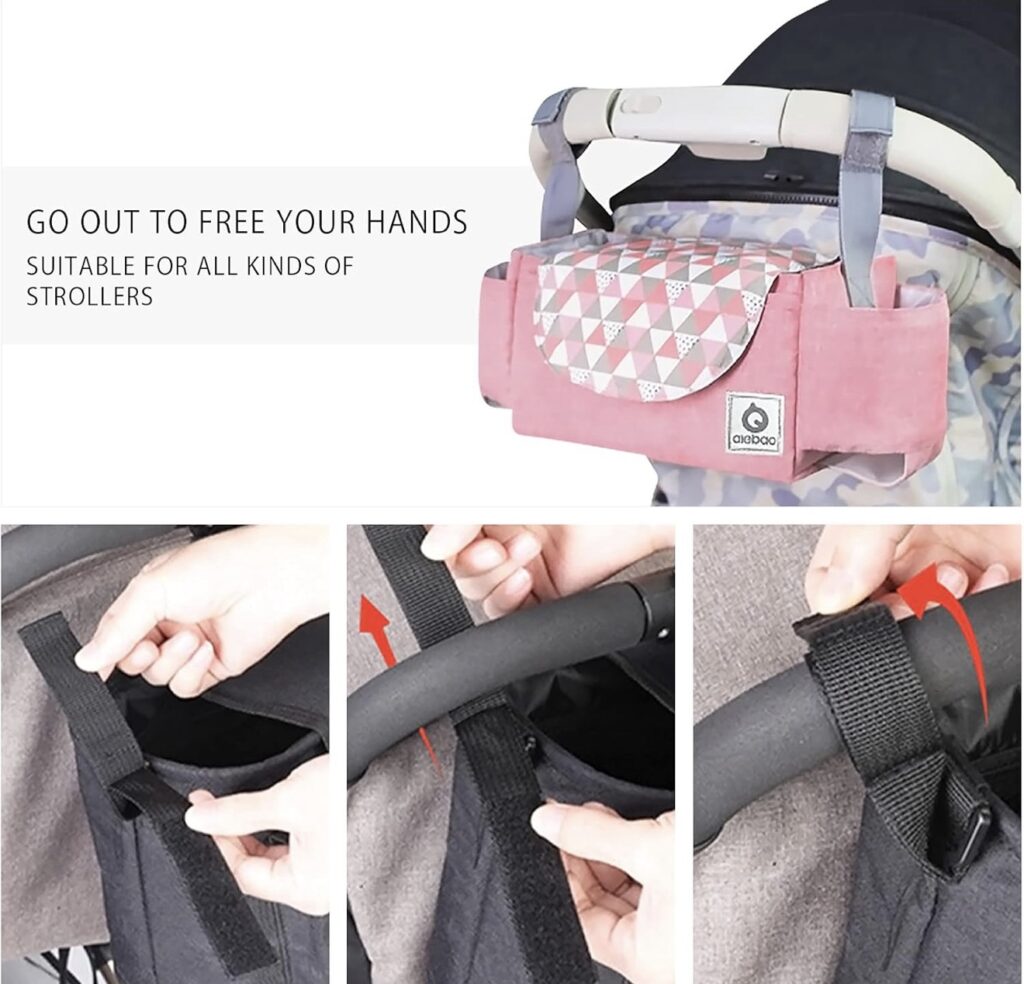 Diseñada para adaptarse a todo tipo de cochecitos y carriolas. Se instala y retira fácilmente, y gracias a su correa superior, también puede utilizarse como bolso de mano cuando lo necesites.