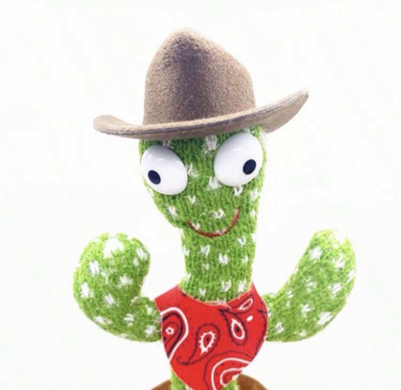 Cactus bailarín con luz y sonido, repite lo que dices, vaquero