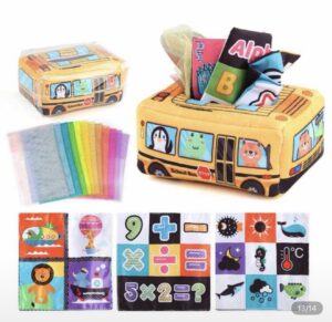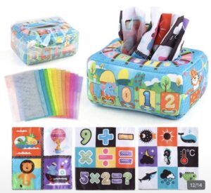 Caja de Pañuelos Sensoriales Montessori para Bebés +12 Meses – Juguete Educativo de Estimulación Temprana, número
