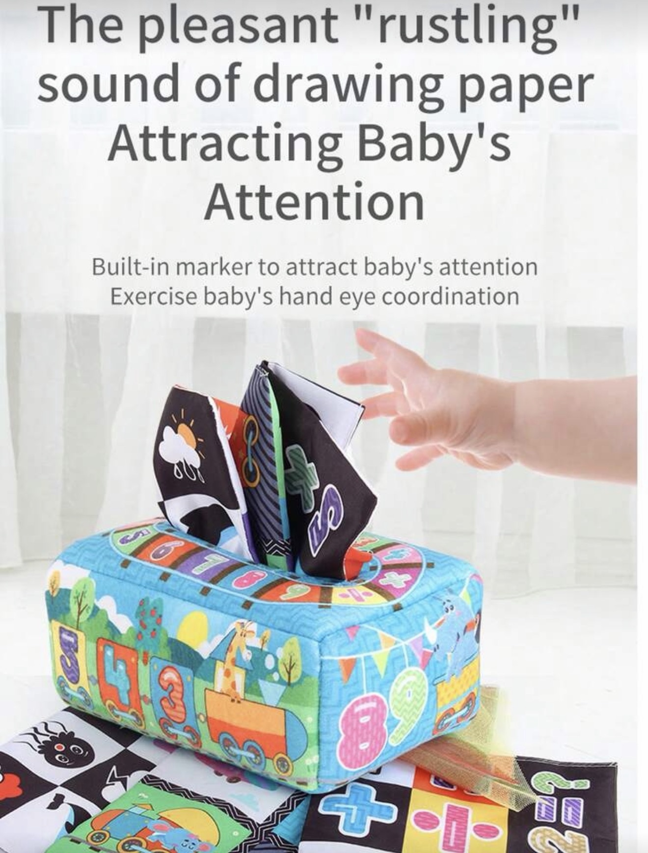 Caja de Pañuelos Sensoriales Montessori para Bebés +12 Meses – Juguete Educativo de Estimulación Temprana, número
