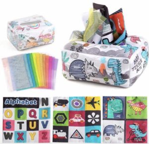 Sé el primero en valorar “Caja de Pañuelos Sensoriales Montessori para Bebés +12 Meses – Juguete Educativo de Estimulación Temprana, dinosaurio”