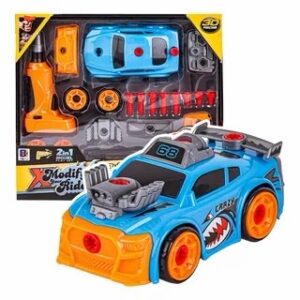 Inspirado en el icónico Mustang, este carro cuenta con un diseño robusto, colores llamativos y detalles realistas que lo hacen aún más atractivo. Además, incluye una herramienta tipo atornillador que permite armar y desarmar el vehículo, fomentando el juego activo y educativo.