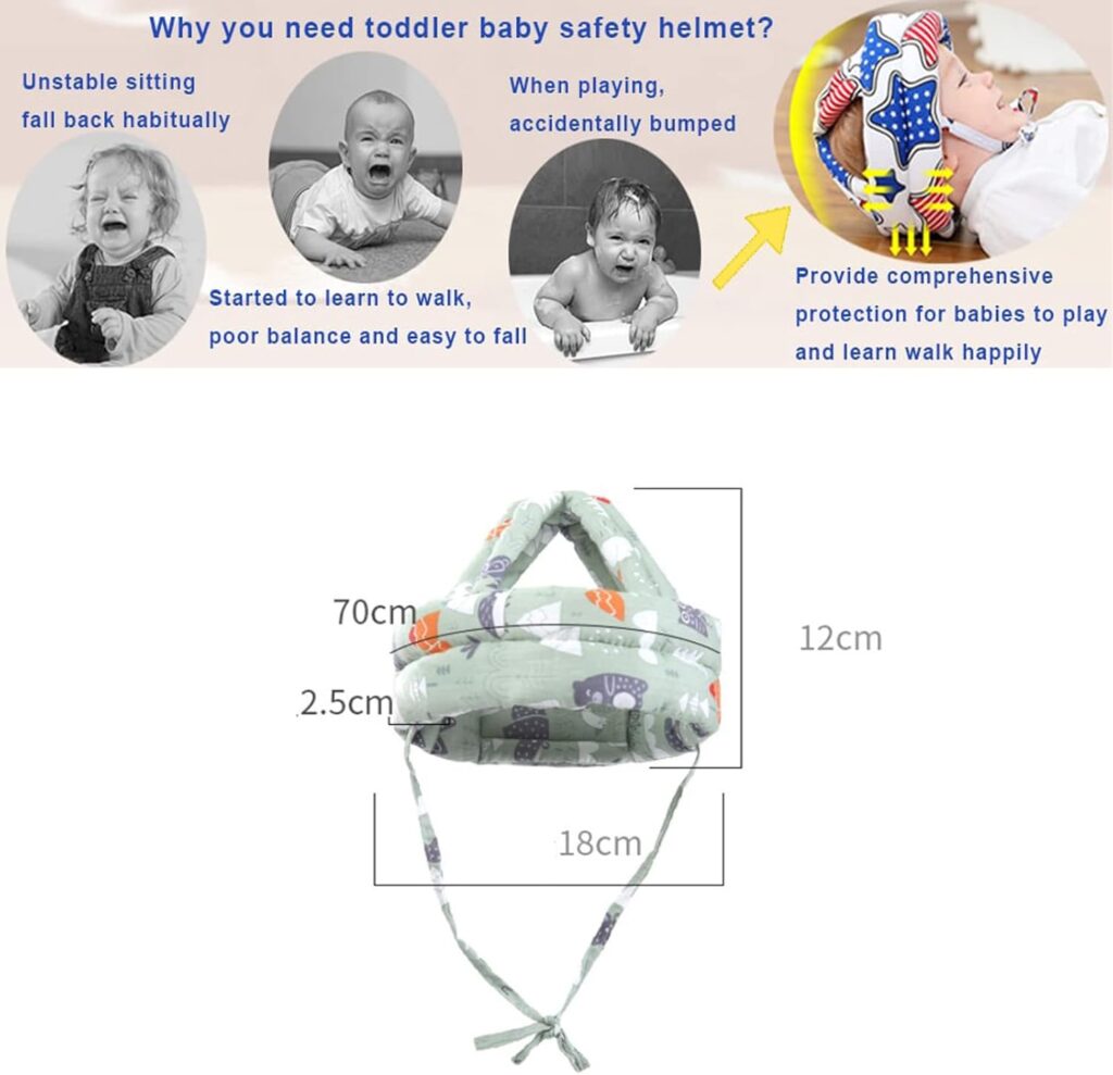 Diseñado para cubrir toda la cabecita del bebé, ayudando a prevenir golpes y caídas mientras gatea, se levanta o empieza a caminar.