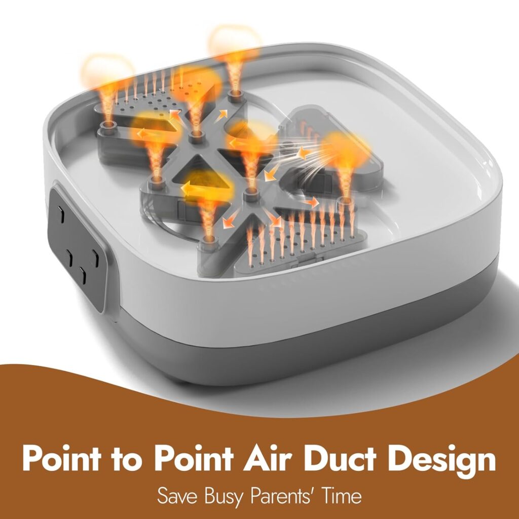 El Esterilizador y Secador de Biberones NCVI es la solución práctica y rápida para mantener los biberones y accesorios de tu bebé completamente limpios, secos y listos para usar. Gracias a su tecnología de vapor y secado ultrarrápido, esteriliza en solo 5 minutos y seca en 15 minutos, completando el ciclo en apenas 20 minutos, ahorrándote tiempo todos los días.