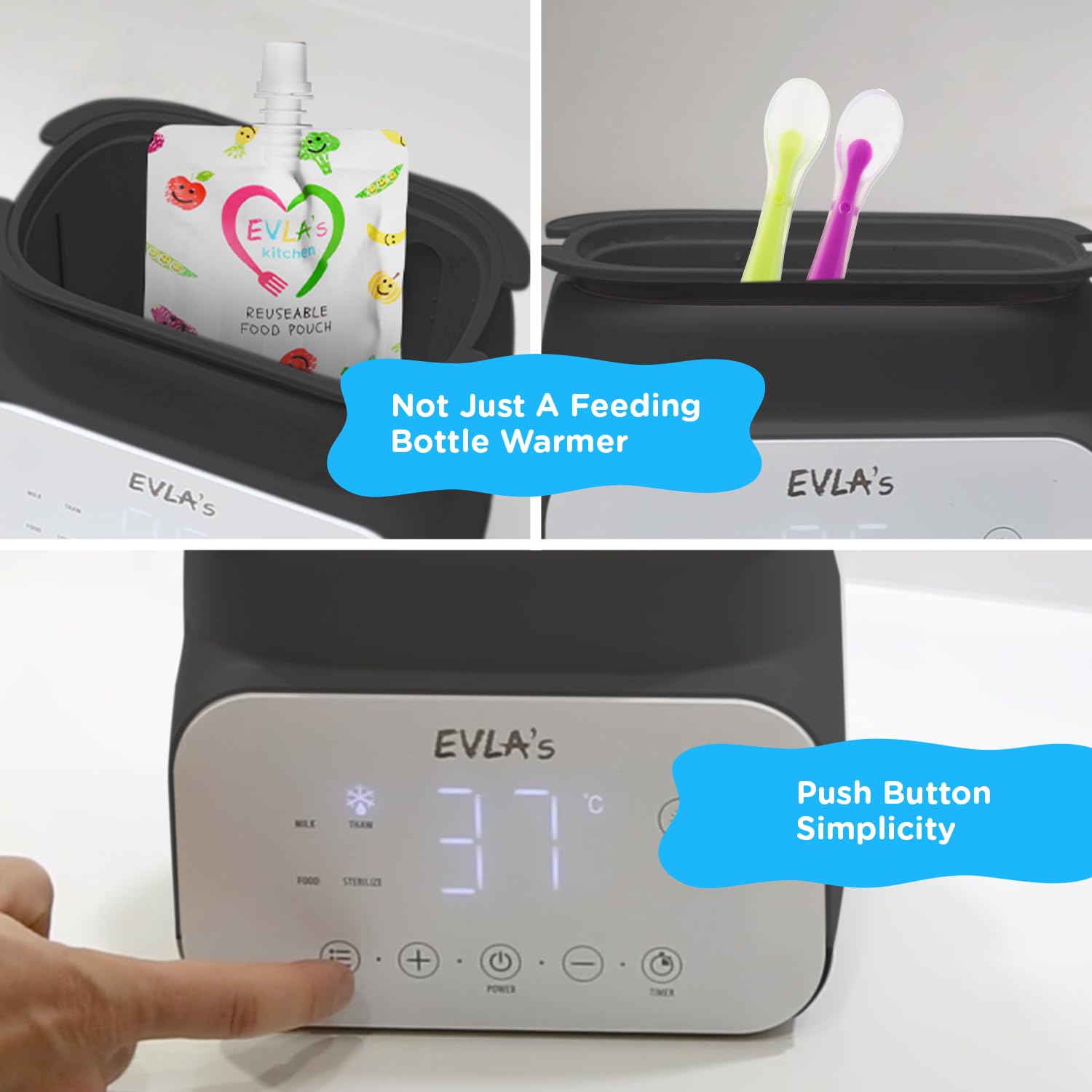 Haz que cada toma sea más fácil, rápida y segura con el Calentador de Biberones EVLA’S, diseñado para padres modernos que buscan practicidad y precisión.