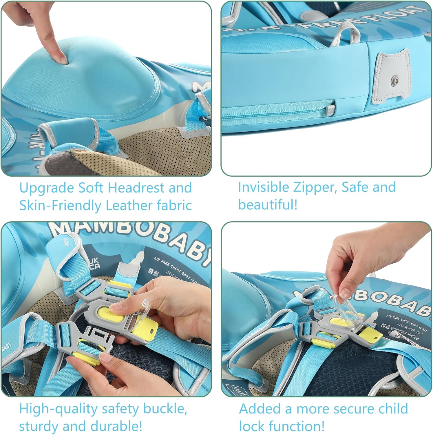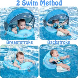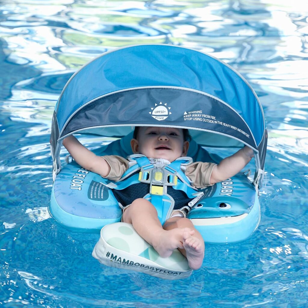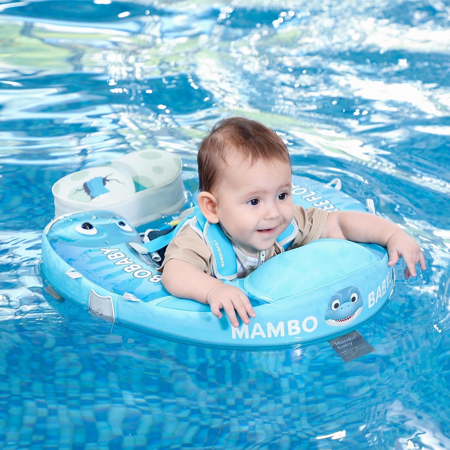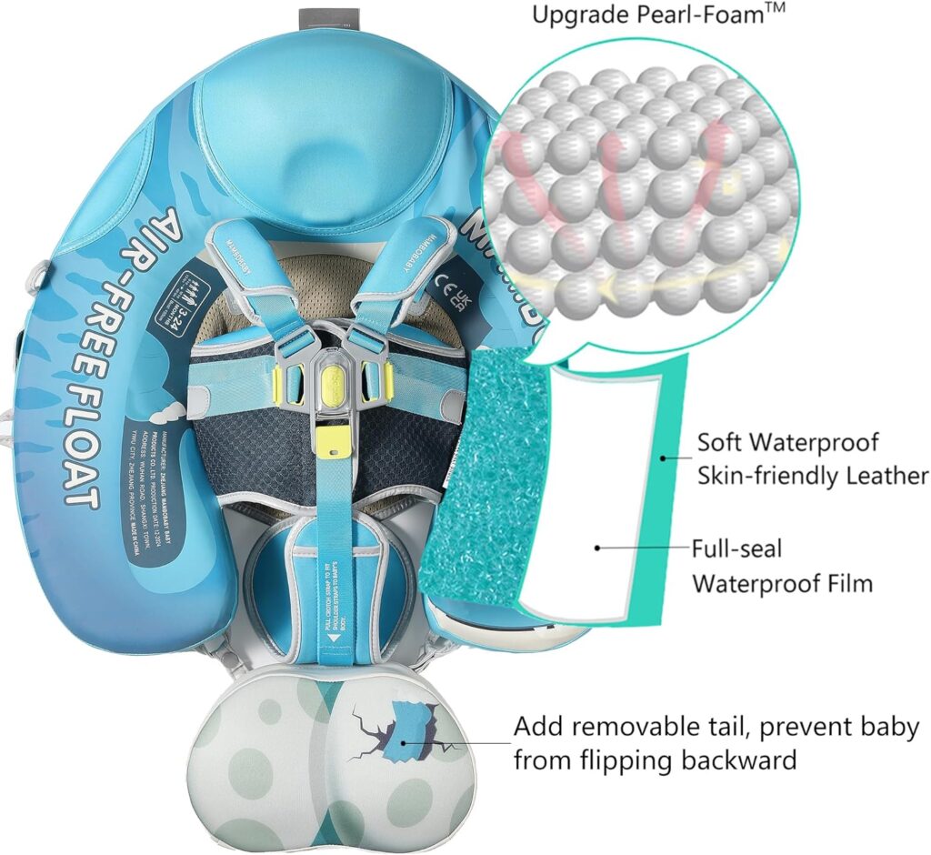Flotador de Bebé Mambobaby con Cola antivuelco y toldo con protección solar UPF50+, No Inflable, 2 Posiciones de Nado, para bebés de 3-24 meses, dinosaurio