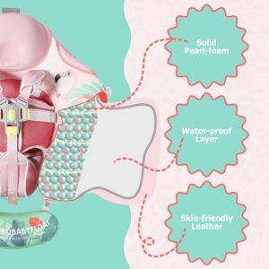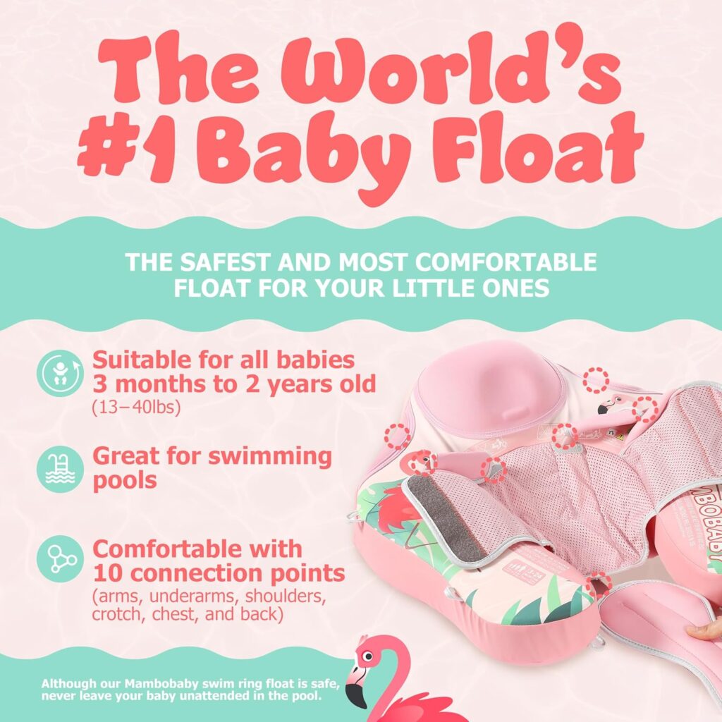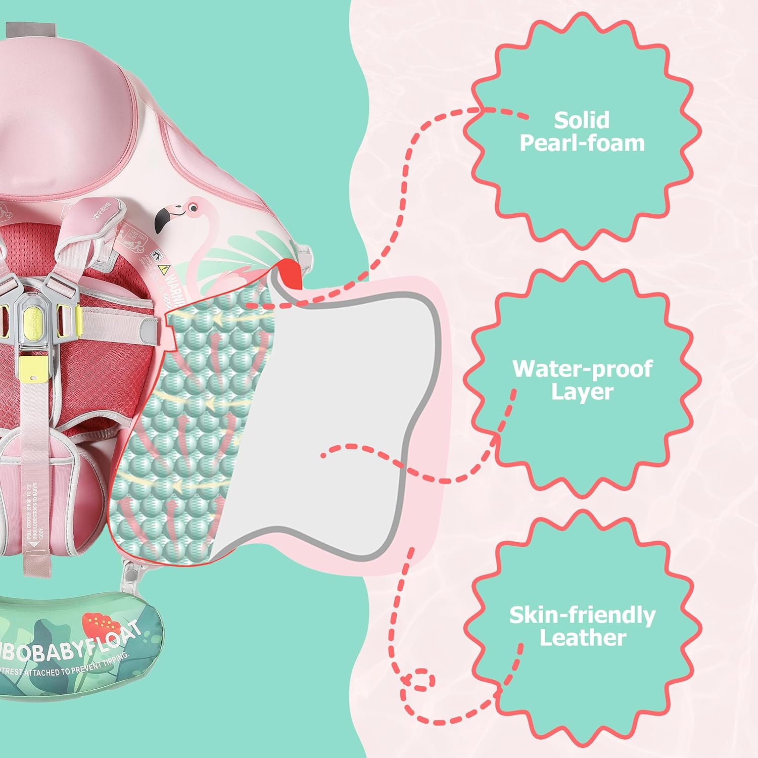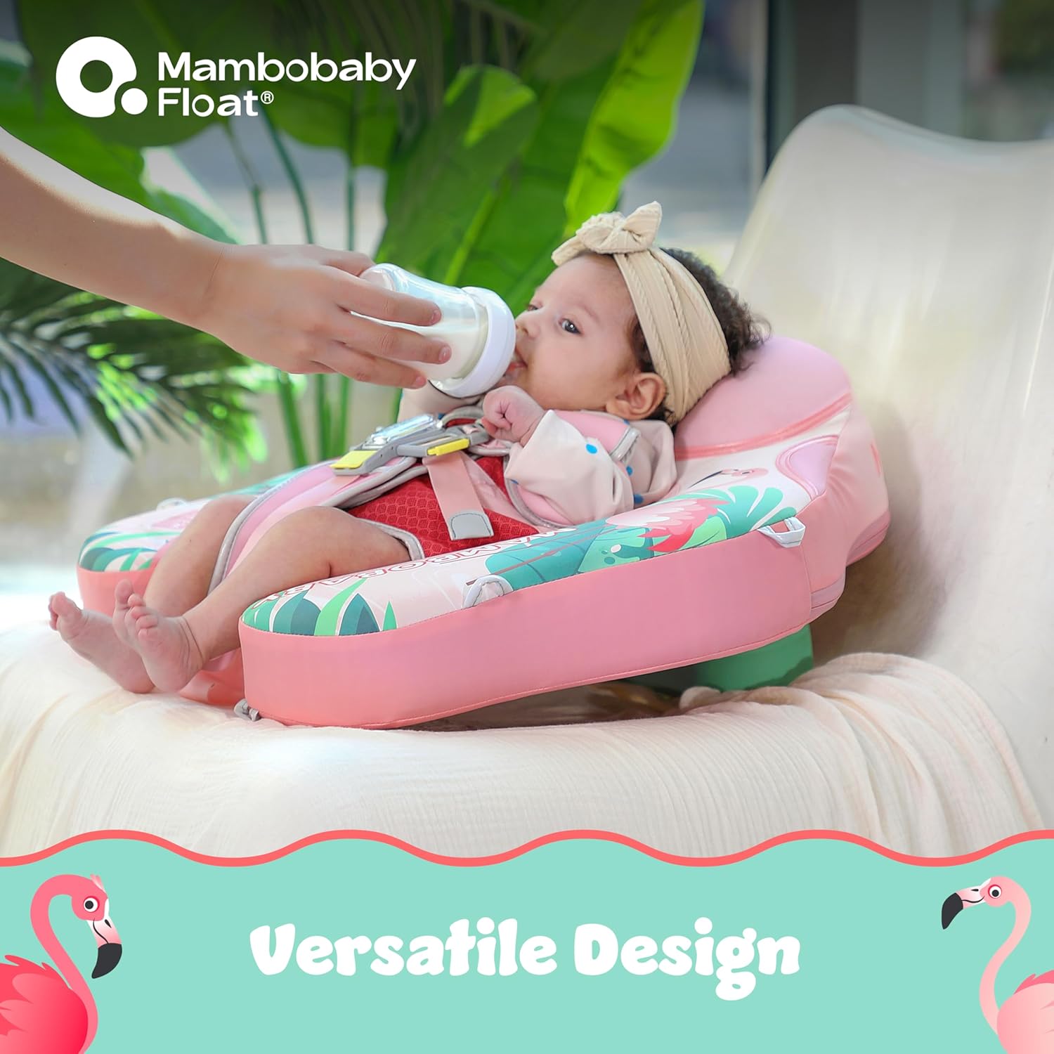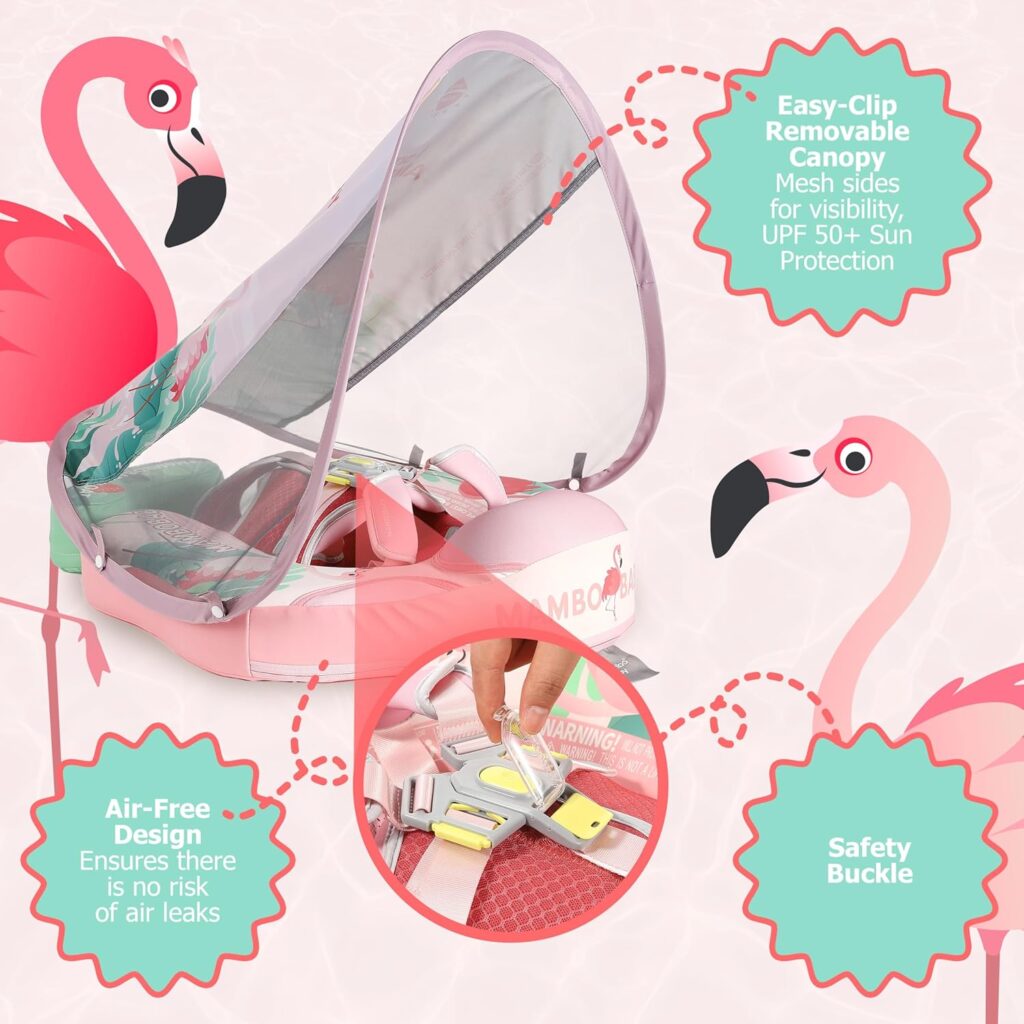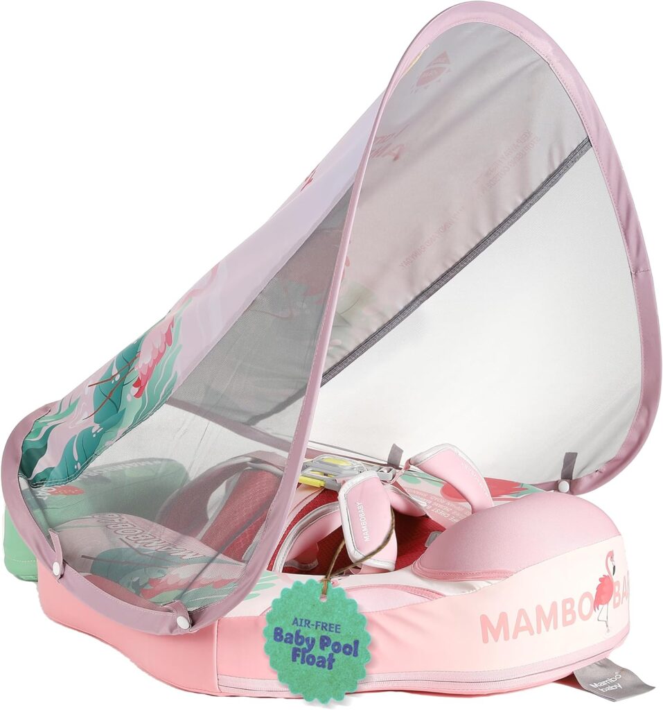 Flotador de Bebé Mambobaby con Cola antivuelco y toldo con protección solar UPF50+, No Inflable, 2 Posiciones de Nado, para bebés de 3-24 meses, flamingo rosado