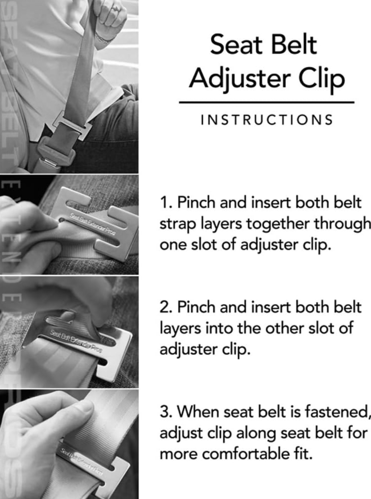 • Evita la irritación del cinturón de seguridad: los cinturones de seguridad a veces pueden frotar incómodamente en los hombros, el cuello y la cara, pero el clip de bloqueo de cinturón de seguridad de metal SBEPros ajusta fácilmente el cinturón lejos de estas áreas sin comprometer la seguridad.