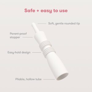 • Seguro y eficaz: Windi es lo suficientemente largo como para llegar más allá del músculo que atrapa el gas y estimula el esfínter, pero tiene un tapón a prueba de padres para que no puedas ir demasiado lejos.