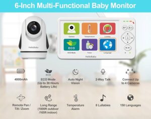 HelloBaby Monitor de Bebé con Cámara y Audio, Pantalla de 6”, Sin WiFi, Batería de Hasta 30 Horas, Cámara Panorámica con Zoom, Visión Nocturna y Comunicación Bidireccional.