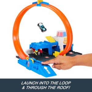 Hot Wheels Super Police Station Track Set con Auto 1:64 – Pista con Loop Ajustable, 4 Formas de Carrera y Juego de Acción