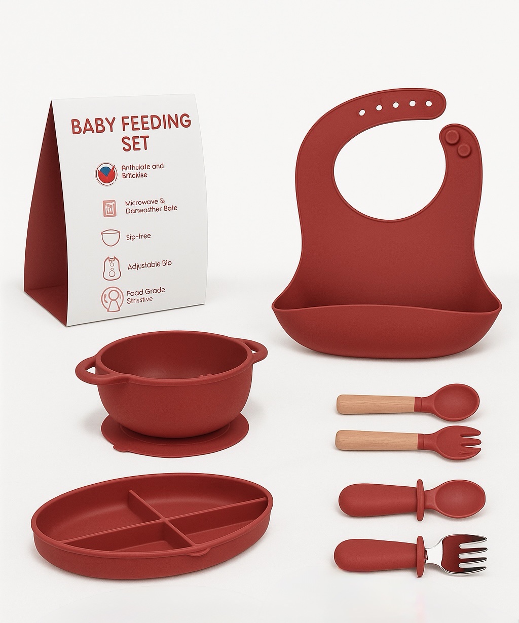 Este juego de alimentación de silicona incluye 7 piezas clave para la hora de comer de tu bebé: cuchara, tenedor, babero ajustable, cuenco y platos con ventosa. Diseñado con materiales de silicona de alta calidad, libres de BPA, PVC y ftalatos, este set es seguro, duradero y perfecto para el proceso de destete.