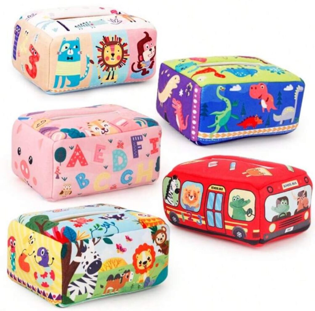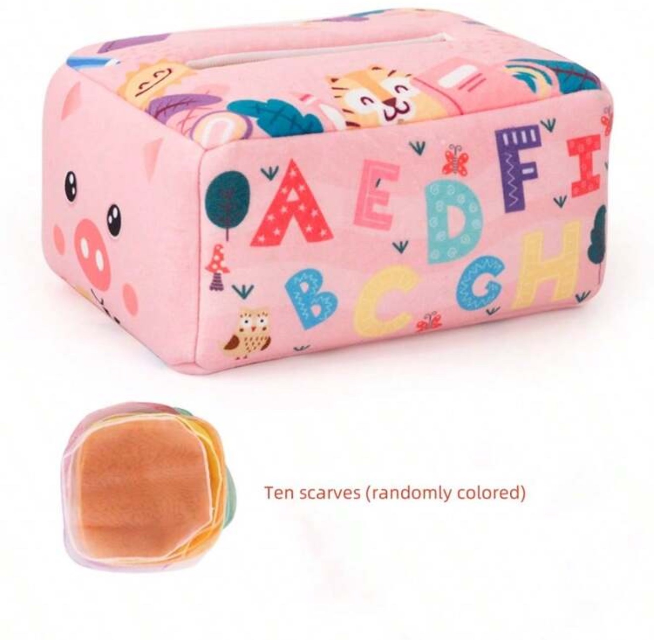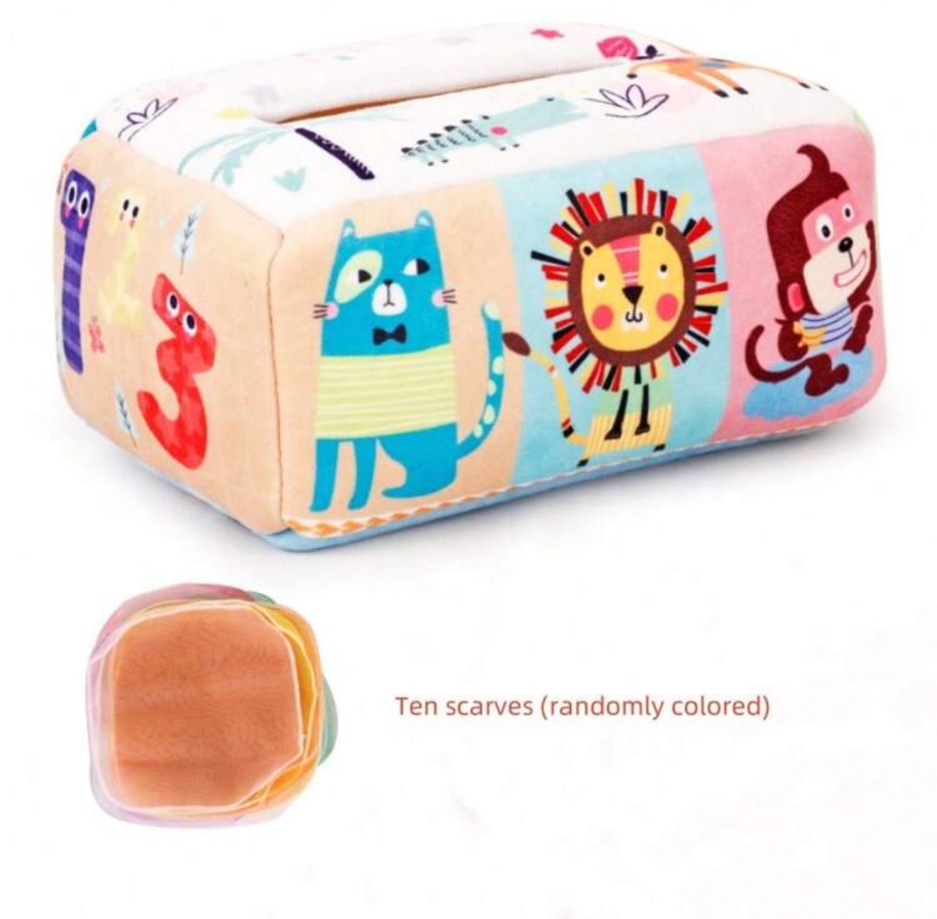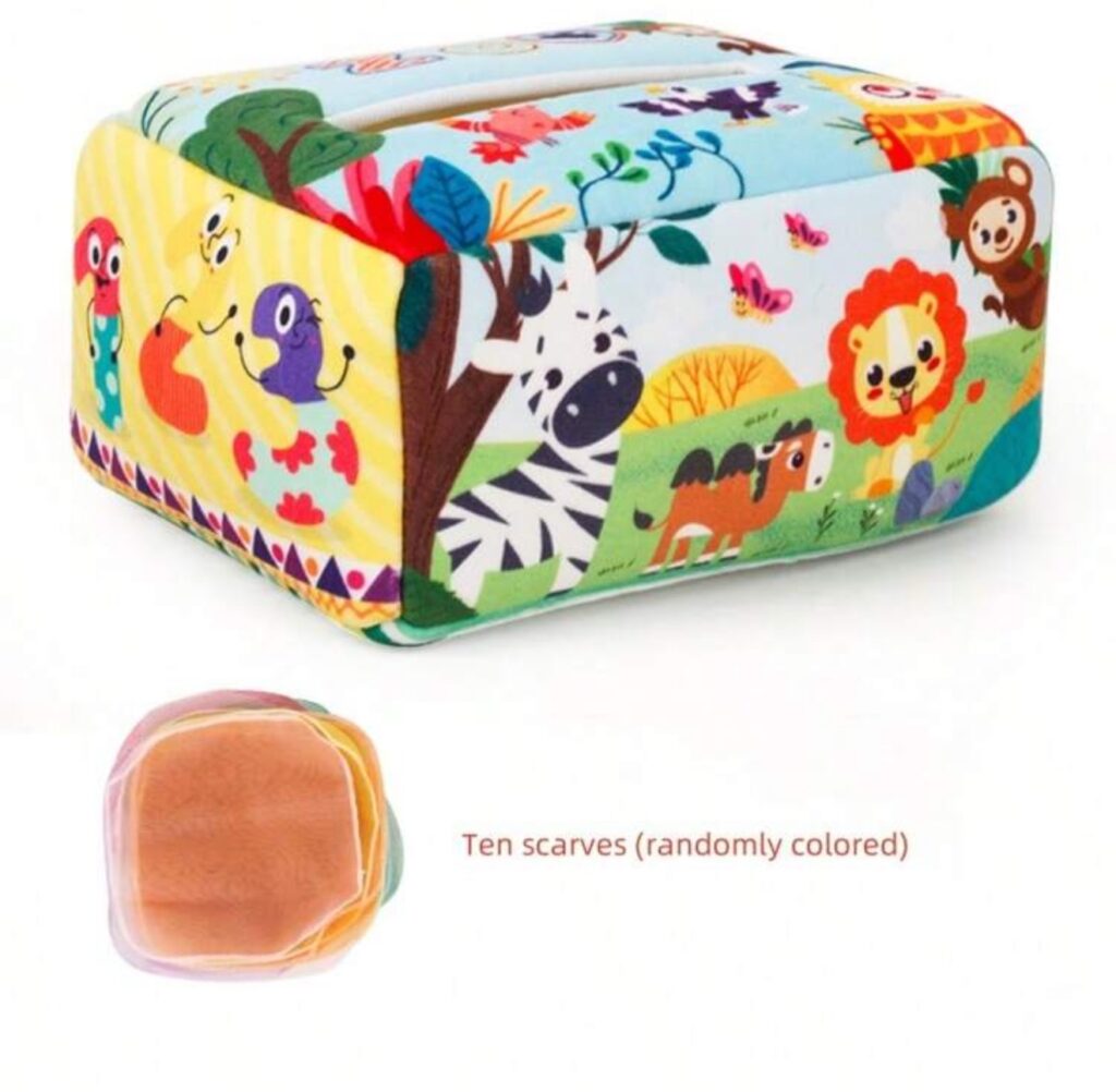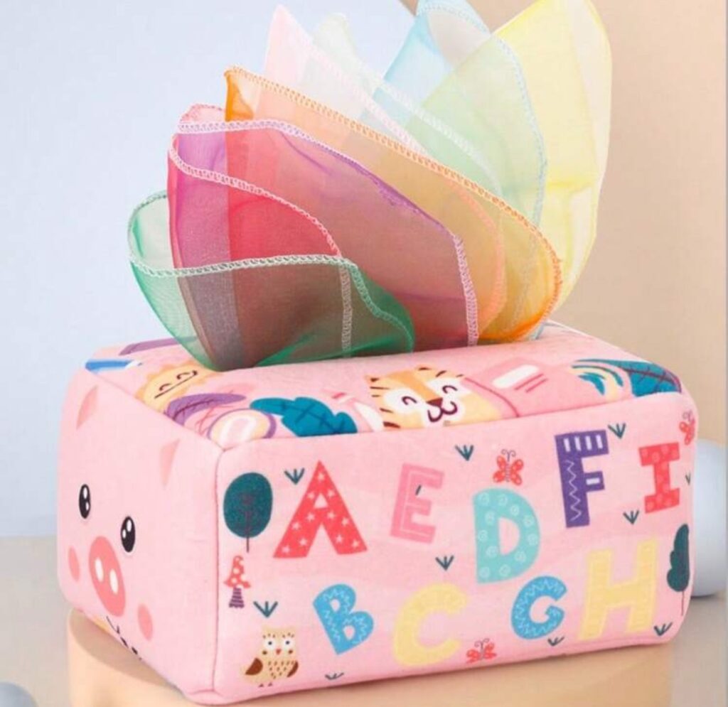 Juguete Montessori de Caja de Pañuelos de Tela para Bebés – Aprendizaje Cognitivo y Motricidad