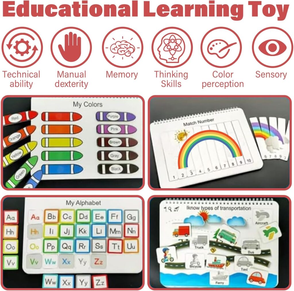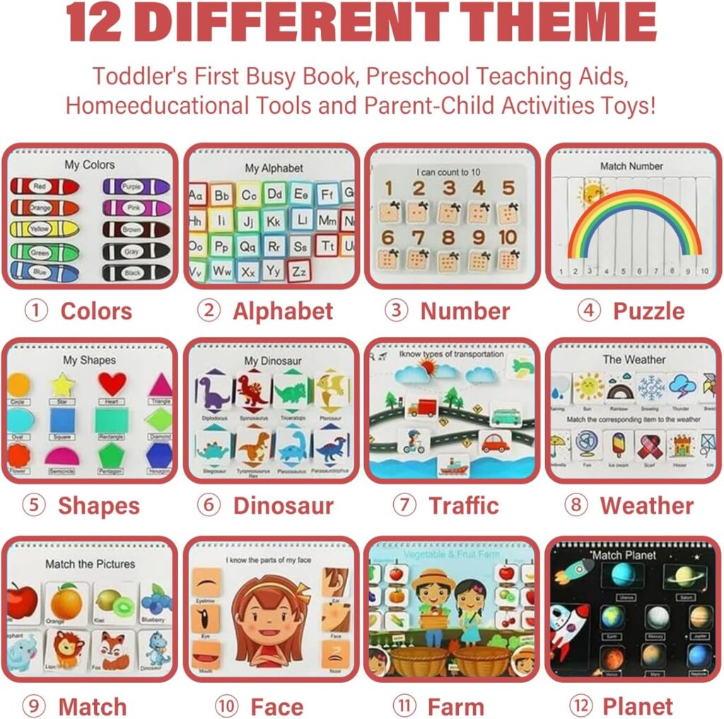 Con 12 temas educativos cuidadosamente seleccionados —como colores, números, formas, dinosaurios, clima, tráfico y más— este busy book ayuda a los niños a conectar el aprendizaje con el juego, reforzando la percepción visual, el pensamiento lógico y la comprensión temprana de conceptos clave.