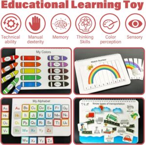 Libro Sensorial Educativo Preschool Busy Book – 12 Temas de Aprendizaje, +300 Stickers y Accesorios | Ideal para Viajes y Juego Didáctico