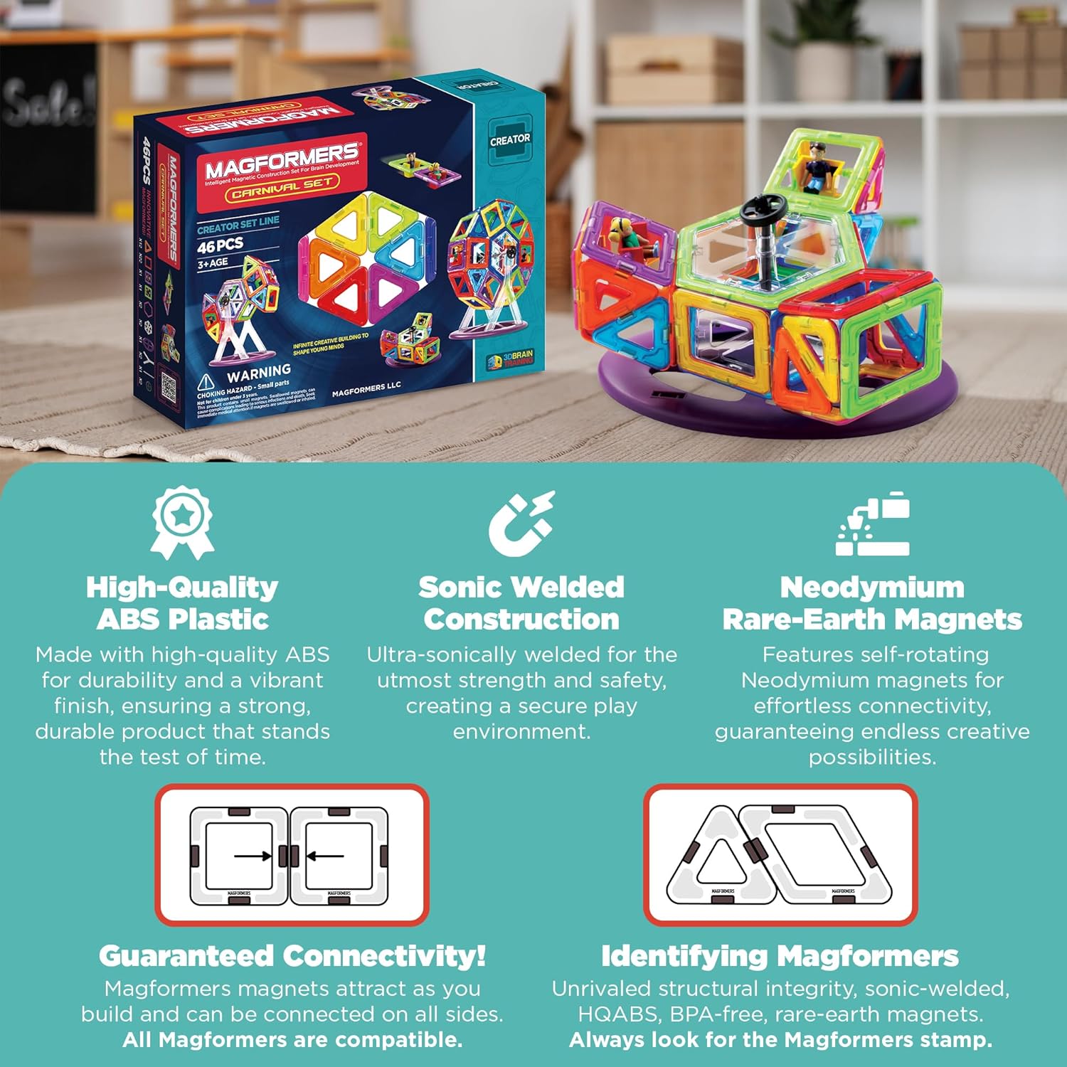 Magformers Creator Carnival Set 46 Piezas Bloques Magnéticos STEM – Set de Construcción Magnética con Accesorios de Feria