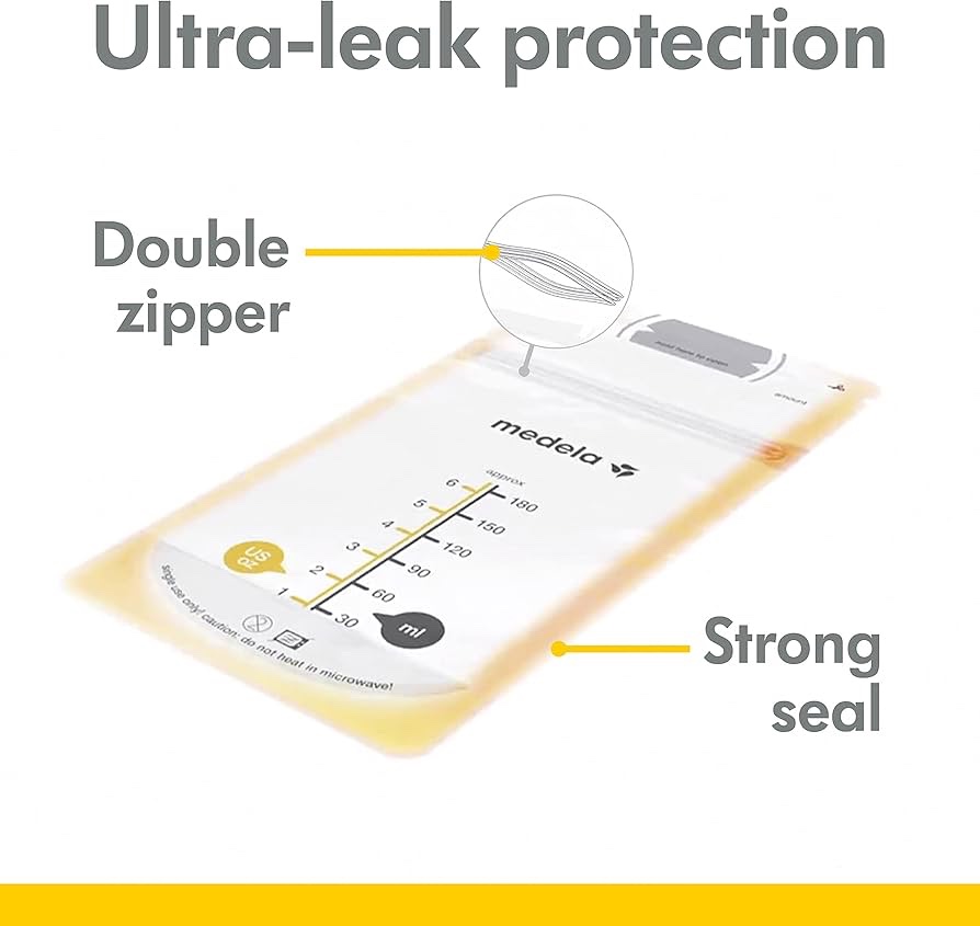 Las bolsas Medela ofrecen una forma práctica, higiénica y segura de almacenar, transportar y calentar la leche materna. Vienen preesterilizadas y listas para usar, diseñadas con cierre doble hermético para evitar fugas y mantener la leche protegida.