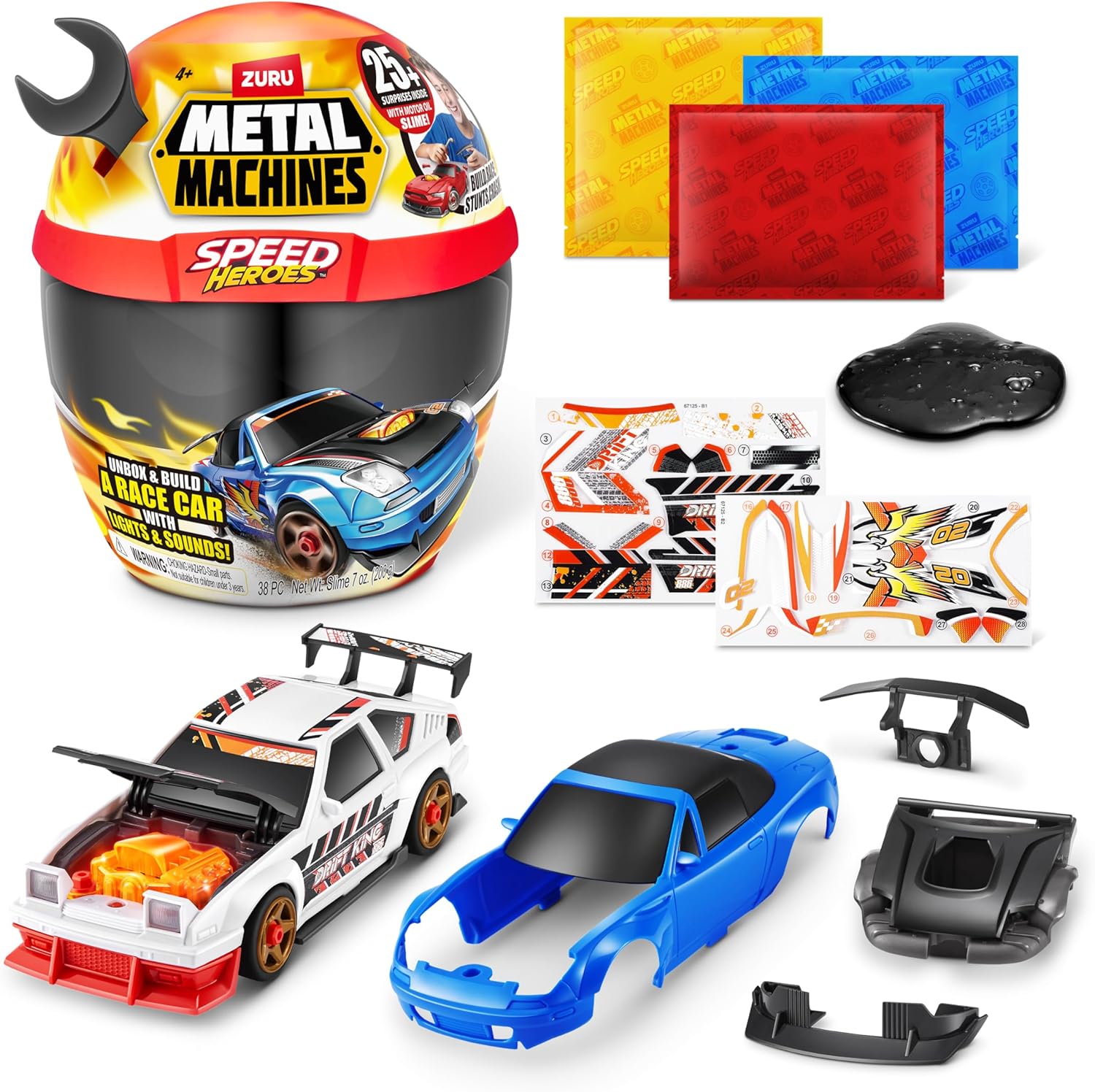 Metal Machines Speed Heroes Black Zuru Set con 20+ Sorpresas – Construye tu Auto con Luces, Sonidos y Slime