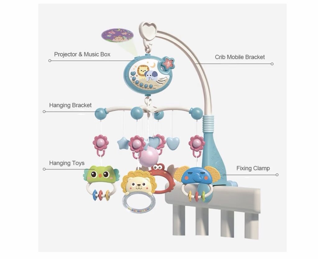 Rotación automática: Los juguetes giran suavemente para captar la atención del bebé