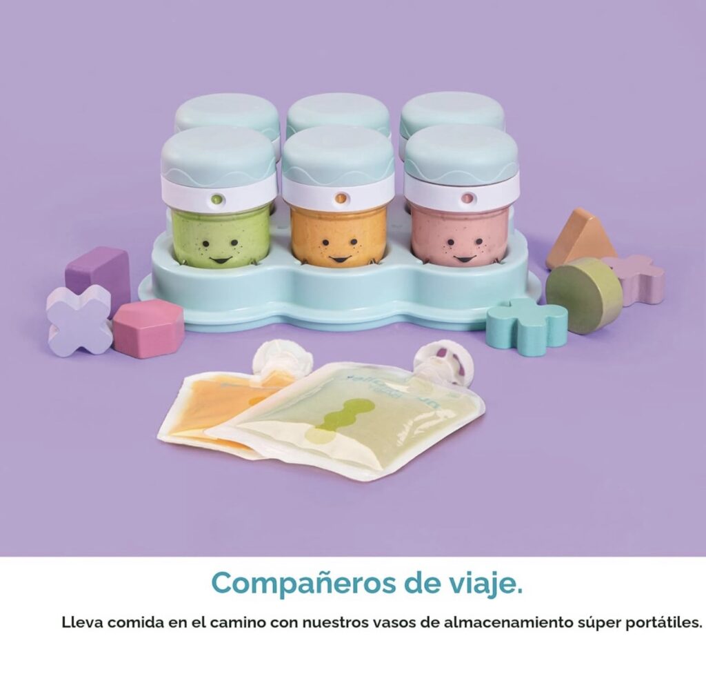 Cuenta con un potente motor de 200W que procesa frutas, verduras y otros ingredientes en segundos, logrando texturas suaves ideales para tu bebé. Incluye múltiples accesorios que te ayudan a organizar porciones, conservar la frescura y transportar fácilmente los alimentos.