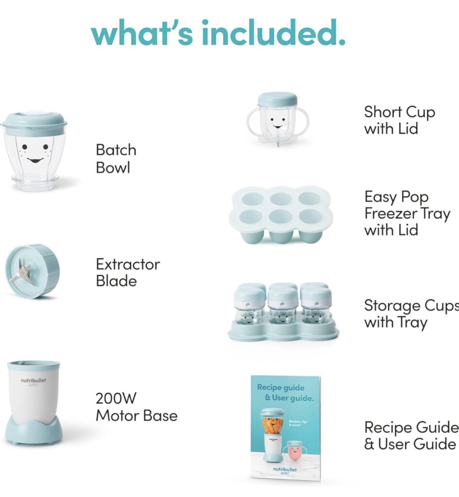 NutriBullet Baby NBY-50100 Sistema Completo para Preparar Alimentos de Bebé 32 oz – Incluye Vasos, Bandeja y Accesorios – Libre de BPA