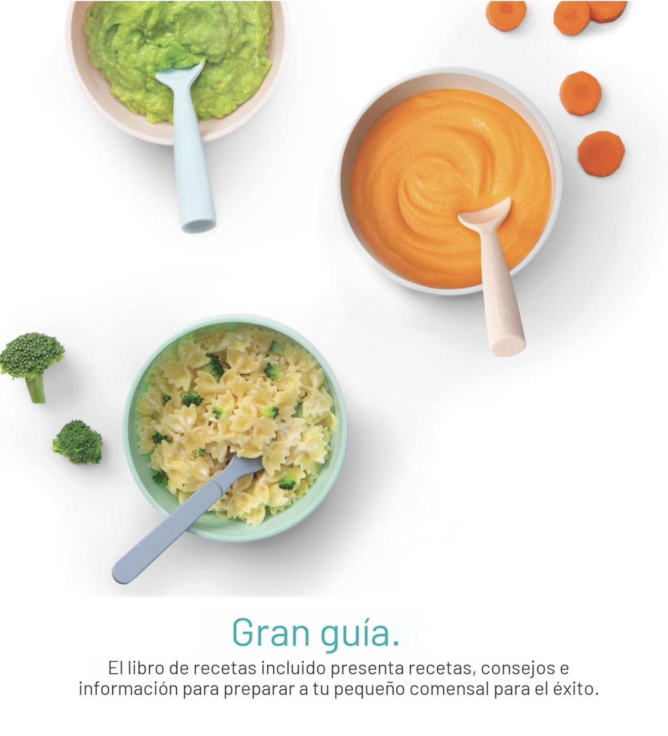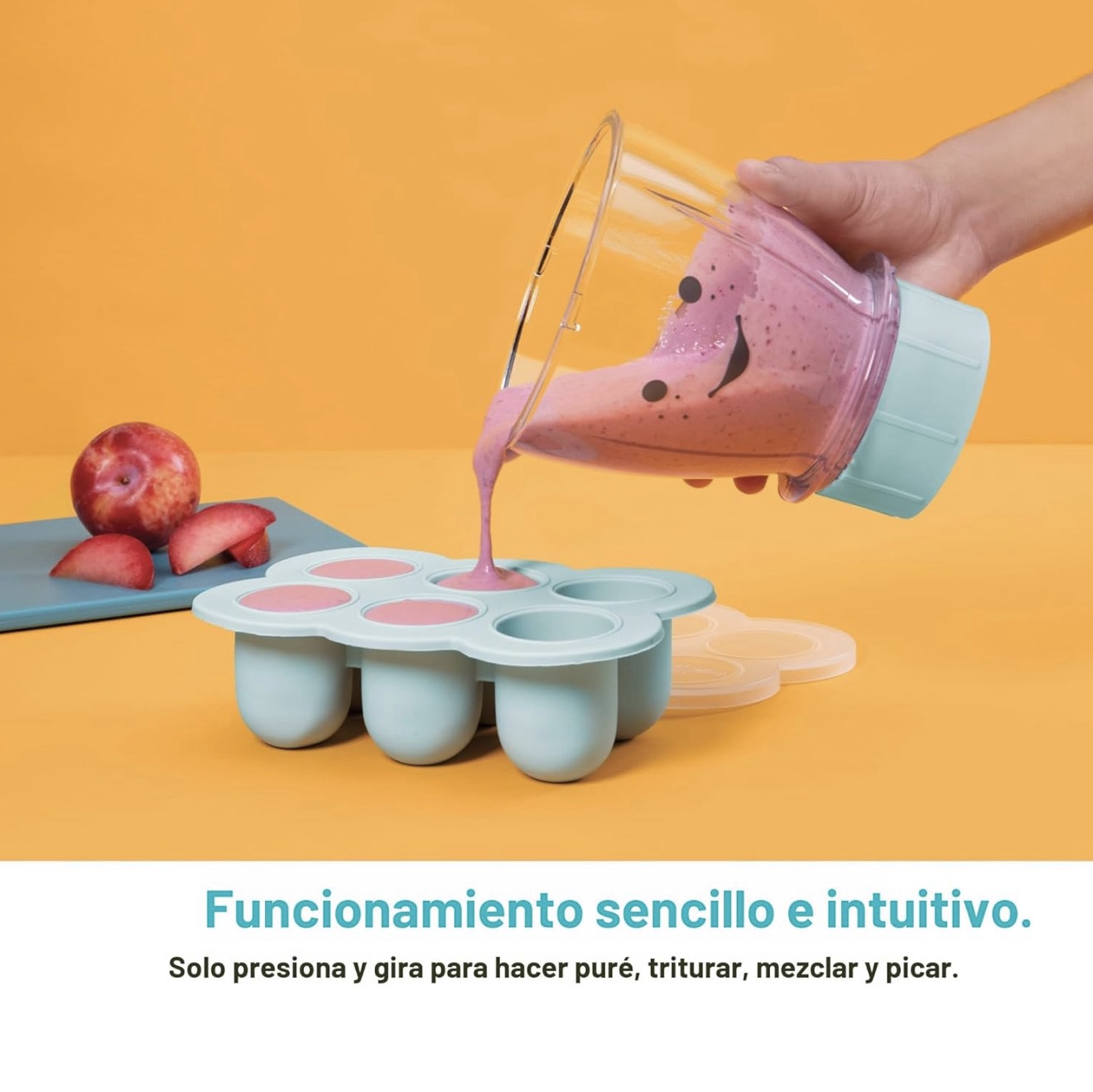 Cuenta con un potente motor de 200W que procesa frutas, verduras y otros ingredientes en segundos, logrando texturas suaves ideales para tu bebé. Incluye múltiples accesorios que te ayudan a organizar porciones, conservar la frescura y transportar fácilmente los alimentos.