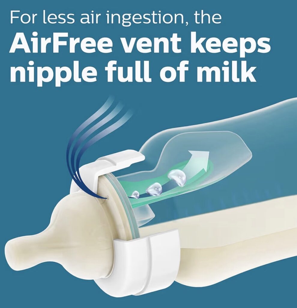 Gracias a su innovadora tecnología AirFree, el bebé puede alimentarse de forma más cómoda, incluso en posición vertical, lo que ayuda a disminuir la ingestión de aire y favorece una alimentación más tranquila.