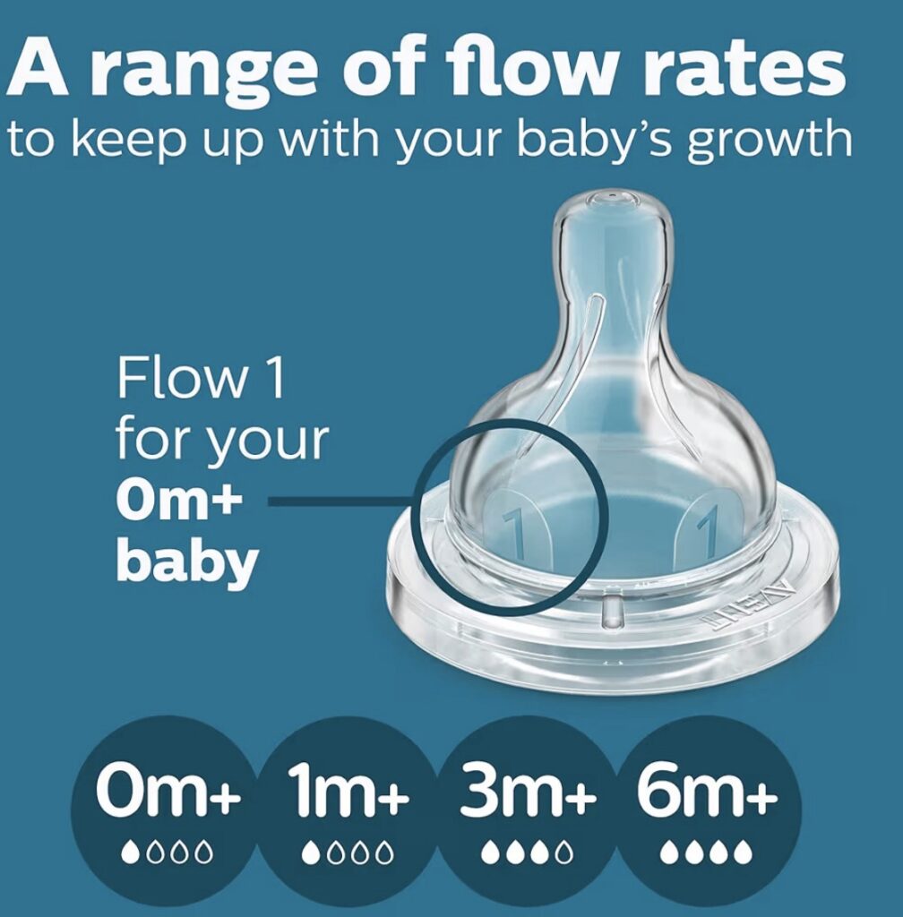 Este modelo incluye una tetina de flujo 1, ideal para recién nacidos desde 0 meses en adelante.