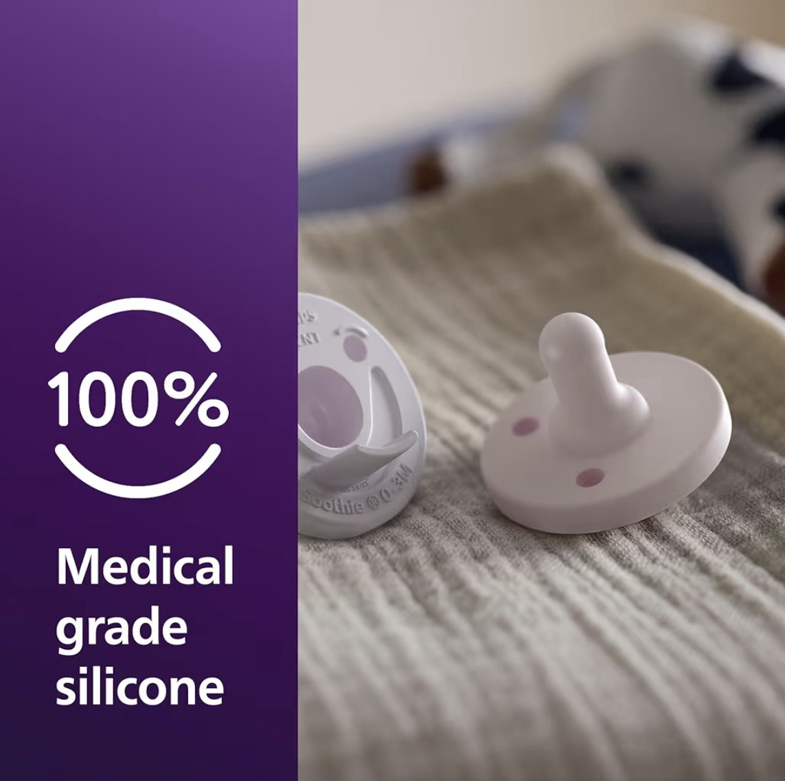 Los chupetes Philips Avent Soothie están fabricados en una sola pieza de silicona de grado médico, lo que ofrece una opción segura, suave y confiable para calmar a tu bebé. Este diseño es ampliamente utilizado en hospitales y recomendado por profesionales de la salud para ayudar a tranquilizar a los recién nacidos.