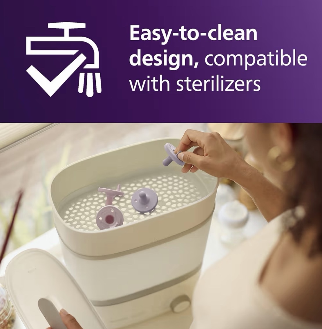 El diseño especial permite introducir el dedo dentro de la tetina, ayudando a crear un vínculo más cercano con tu bebé mientras lo calmas. Al ser de una sola pieza, evita que el agua quede atrapada, facilitando la limpieza y esterilización.