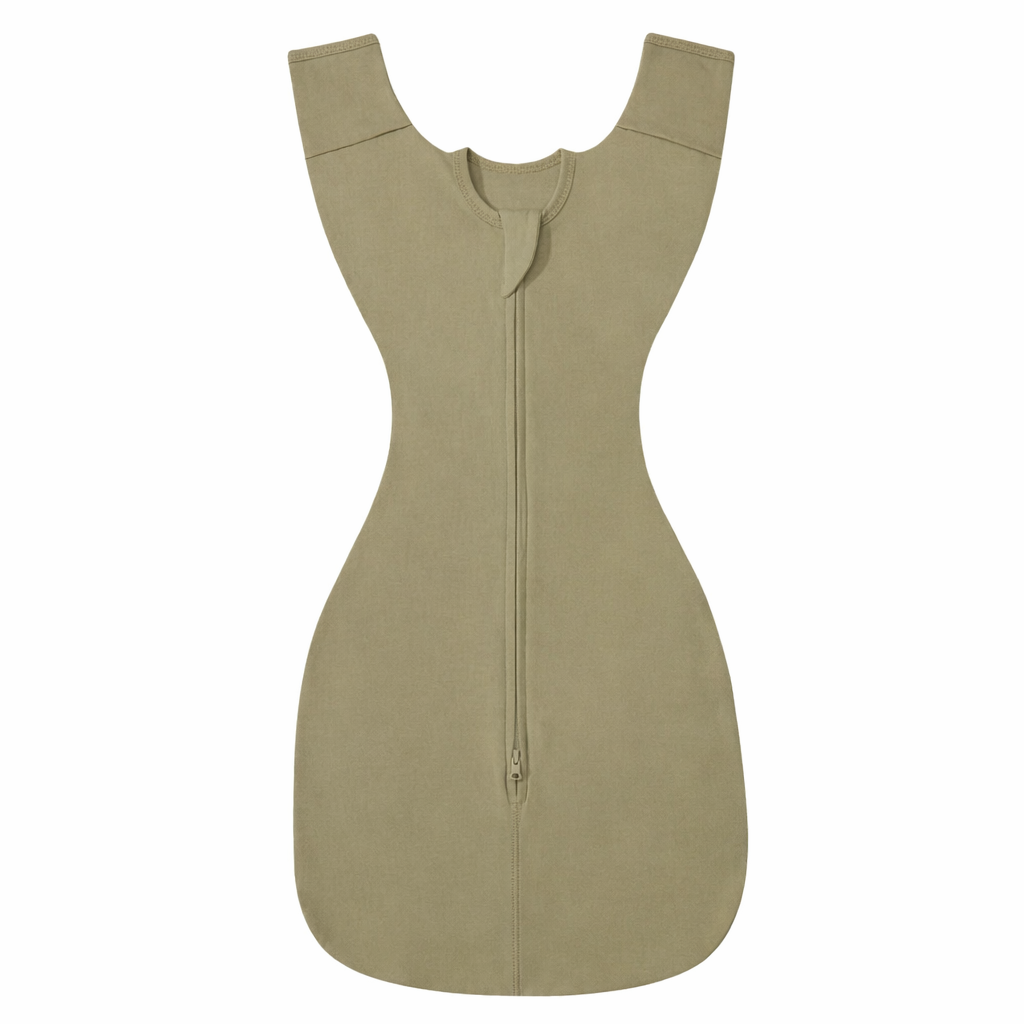 Su diseño permite que el bebé duerma con los brazos hacia arriba en posición natural, favoreciendo un sueño más tranquilo y confortable.