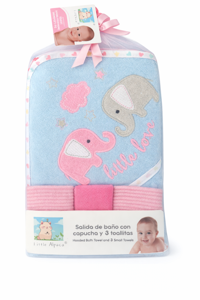 Envuelve a tu bebé en suavidad y comodidad después del baño con esta salida de baño con capucha, acompañada de 3 toallitas suaves, ideales para el cuidado diario de la piel delicada del bebé.