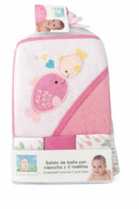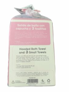 Contiene 1 salida de baño con capucha y 3 toallitas pequeñas, prácticas y versátiles para el uso diario.