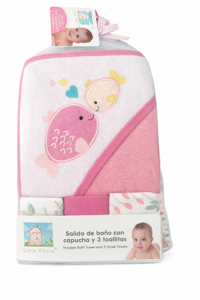 Sé el primero en valorar “Salida de Baño para Bebé con Capucha 66×76 cm + Set de 3 Toallitas 20×20 cm – Toalla Suave y Absorbente para Recién Nacidos y Bebés, peces rosa”