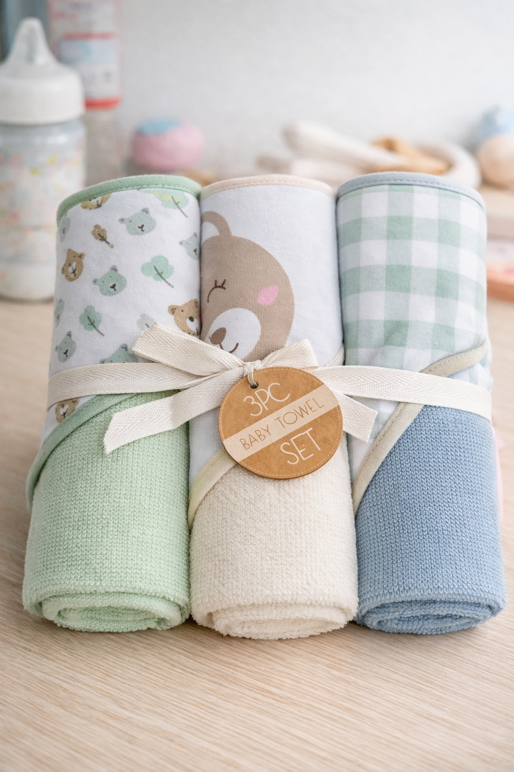 Este set de 3 salidas de baño con capucha es ideal para el cuidado diario del bebé después del baño. Diseñadas para brindar suavidad, absorción y confort, ayudan a mantener al bebé seco y abrigado desde el primer momento.