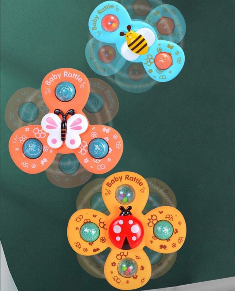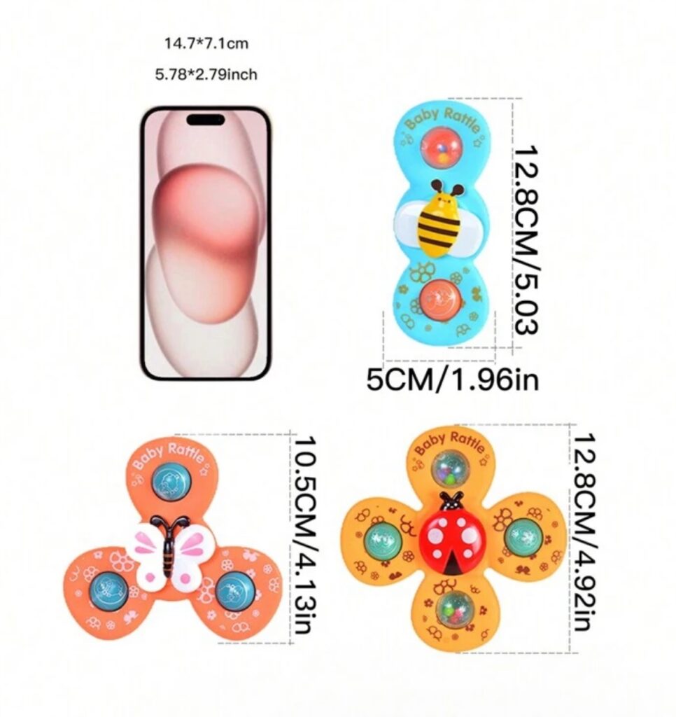 Set de 3 spinners Sensoriales con Ventosa – Juguetes Giratorios de Insectos 1 para Bebés