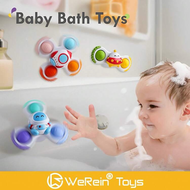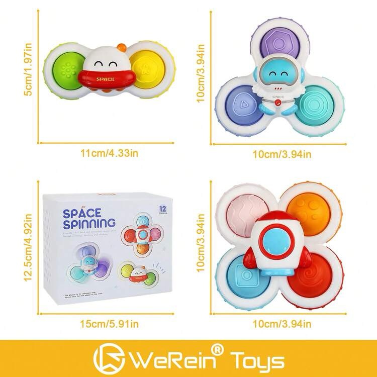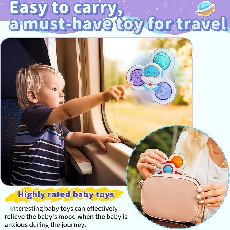 Spinners con Ventosa Sensoriales – Juguetes Giratorios para Bebés – Espaciales (Set de 3 Piezas)