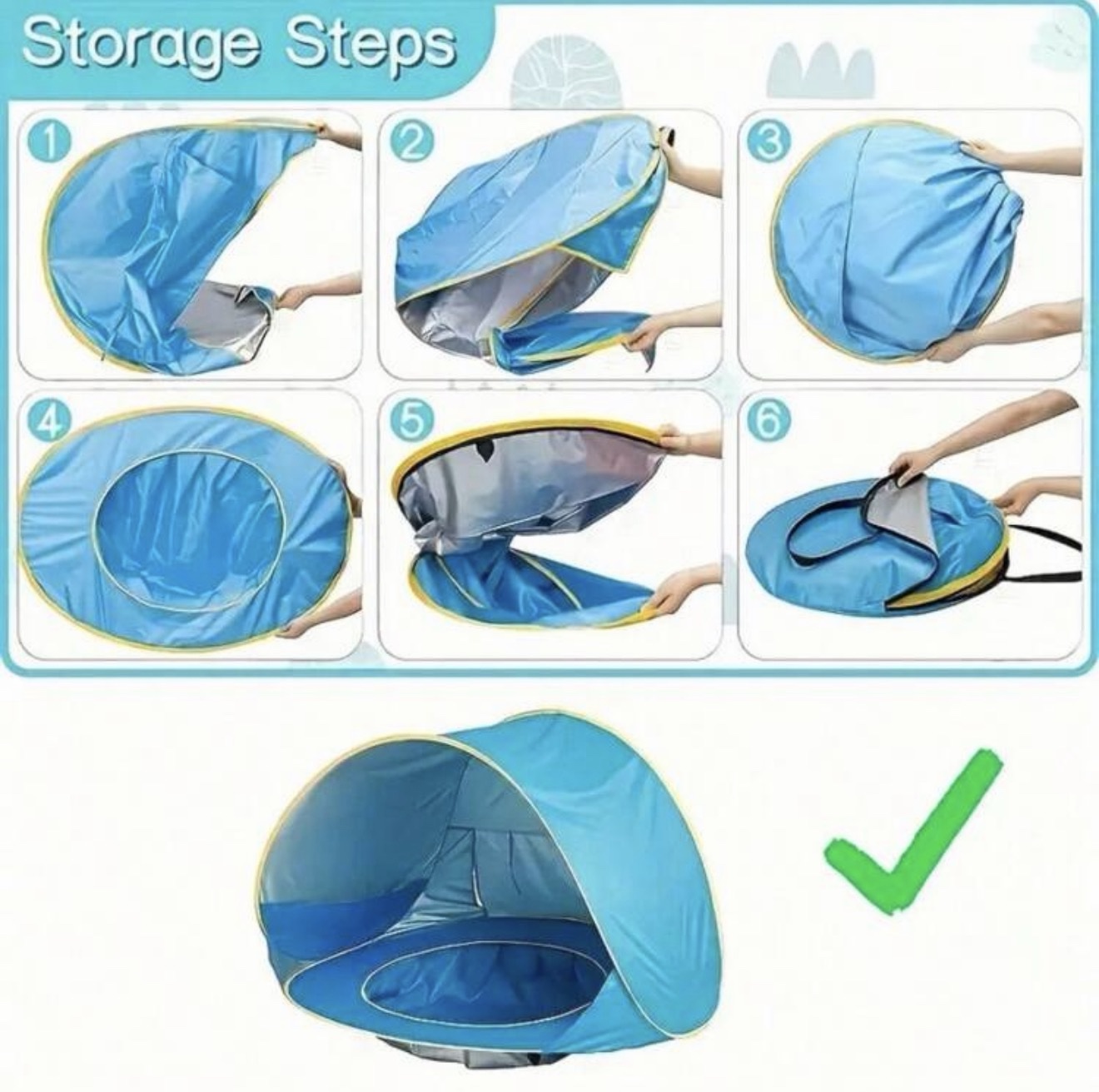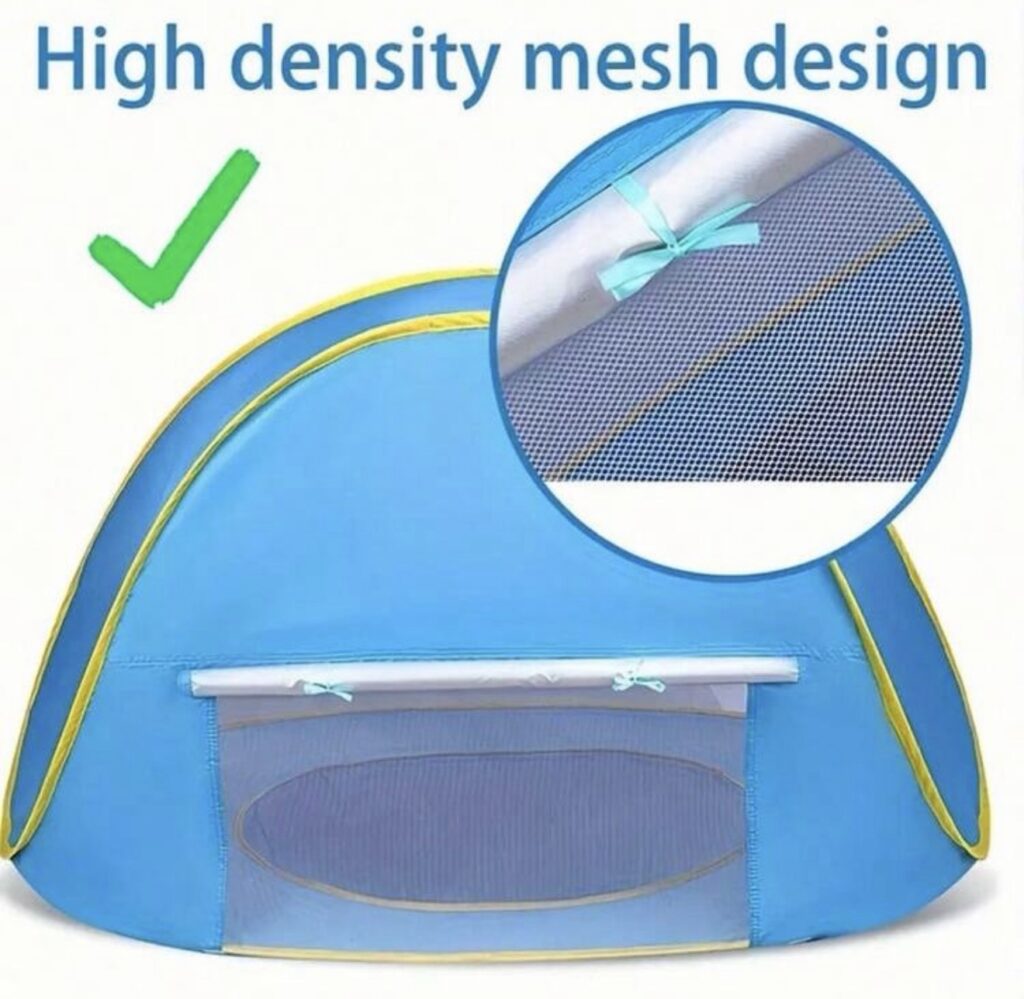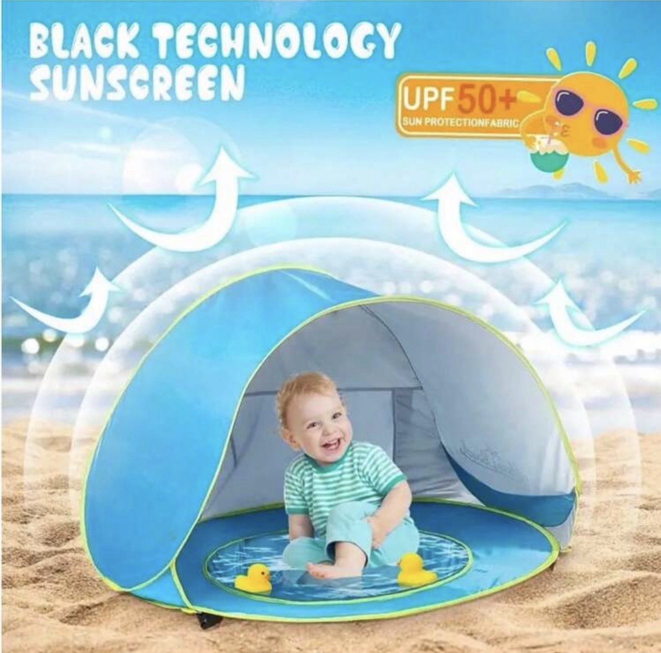 Haz que los días de sol sean más seguros y divertidos para tu bebé con esta tienda de playa infantil con toldo y mini piscina integrada. Diseñada para brindar protección solar UPF 50+, cuenta con tecnología de tela tipo black sunscreen que ayuda a bloquear los rayos UV, manteniendo a los pequeños frescos y protegidos mientras juegan.