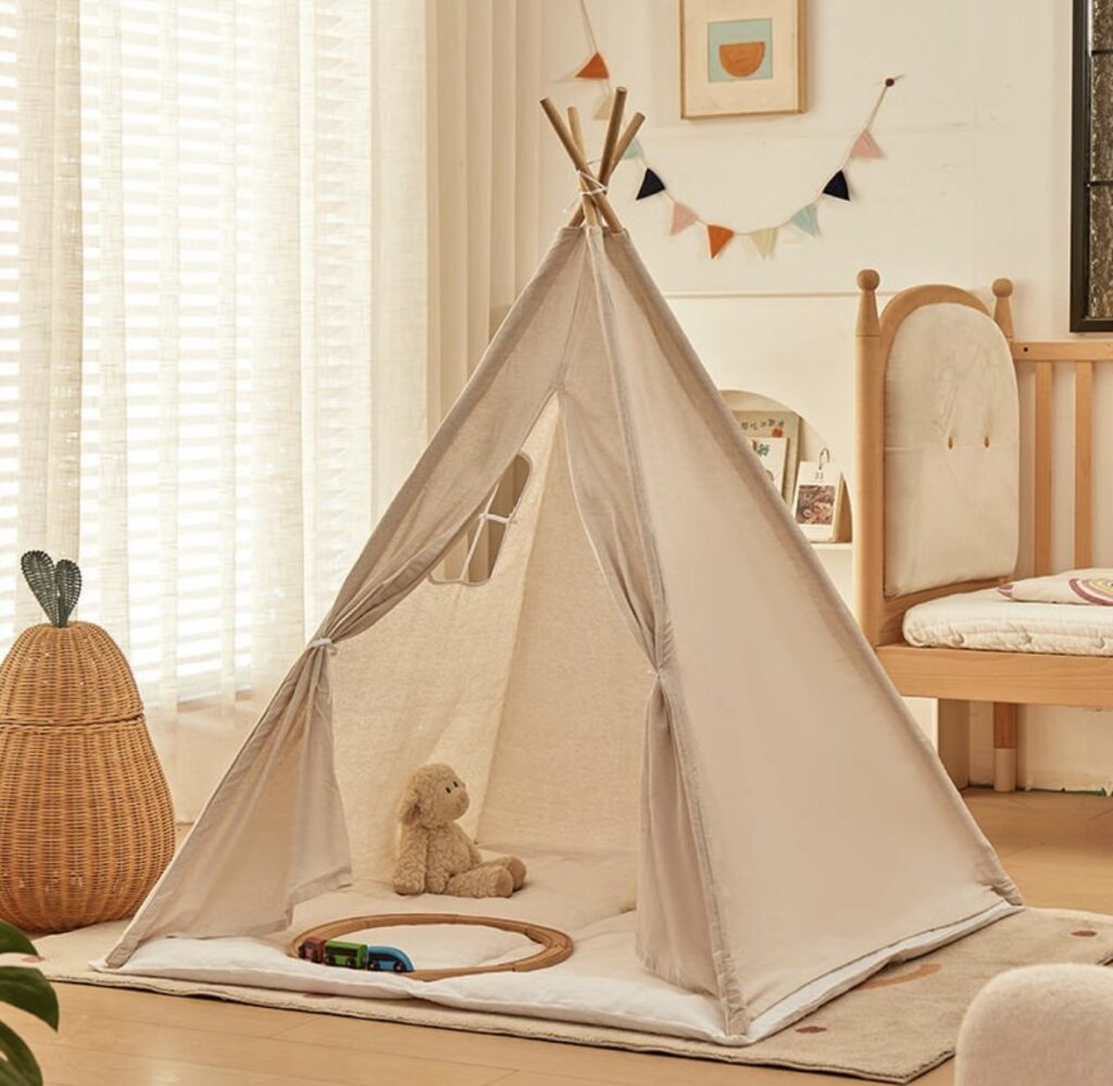 Crea un espacio mágico y acogedor para los más pequeños con este tipi tienda de campaña, ideal para jugar, leer o descansar. Fabricado con tela resistente y estructura de madera, su diseño ligero y fácil de armar lo hace perfecto para cualquier rincón de la casa. Incluye alfombra acolchada para mayor comodidad y horas de diversión. Su estilo moderno y encantador se adapta a habitaciones infantiles, salas de juego o incluso para usar en exteriores bajo techo.