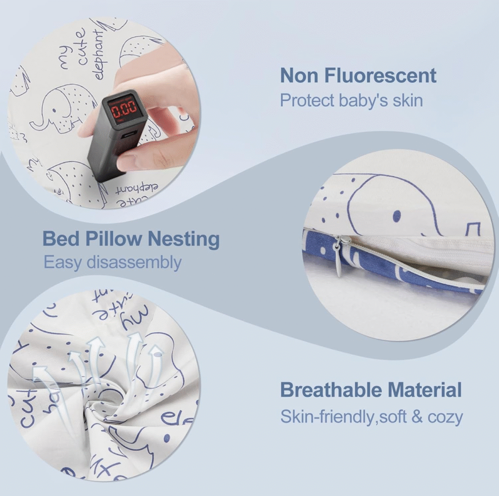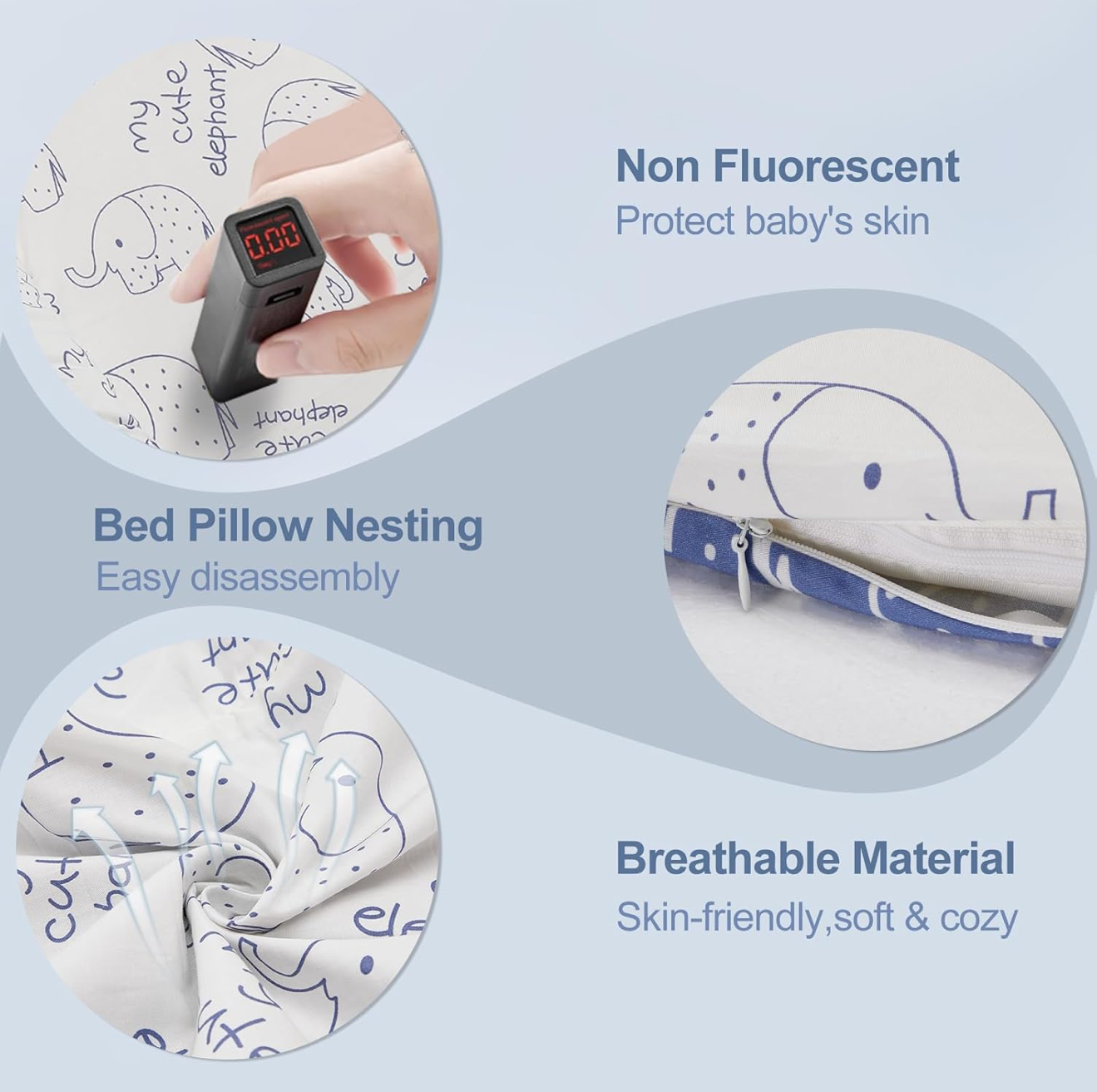 🧸 100% algodón puro – Su cubierta está elaborada con algodón ultra suave y transpirable, con relleno de poliéster 3D. Sin sustancias nocivas, segura para la piel sensible del bebé.