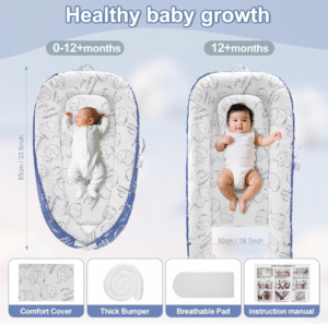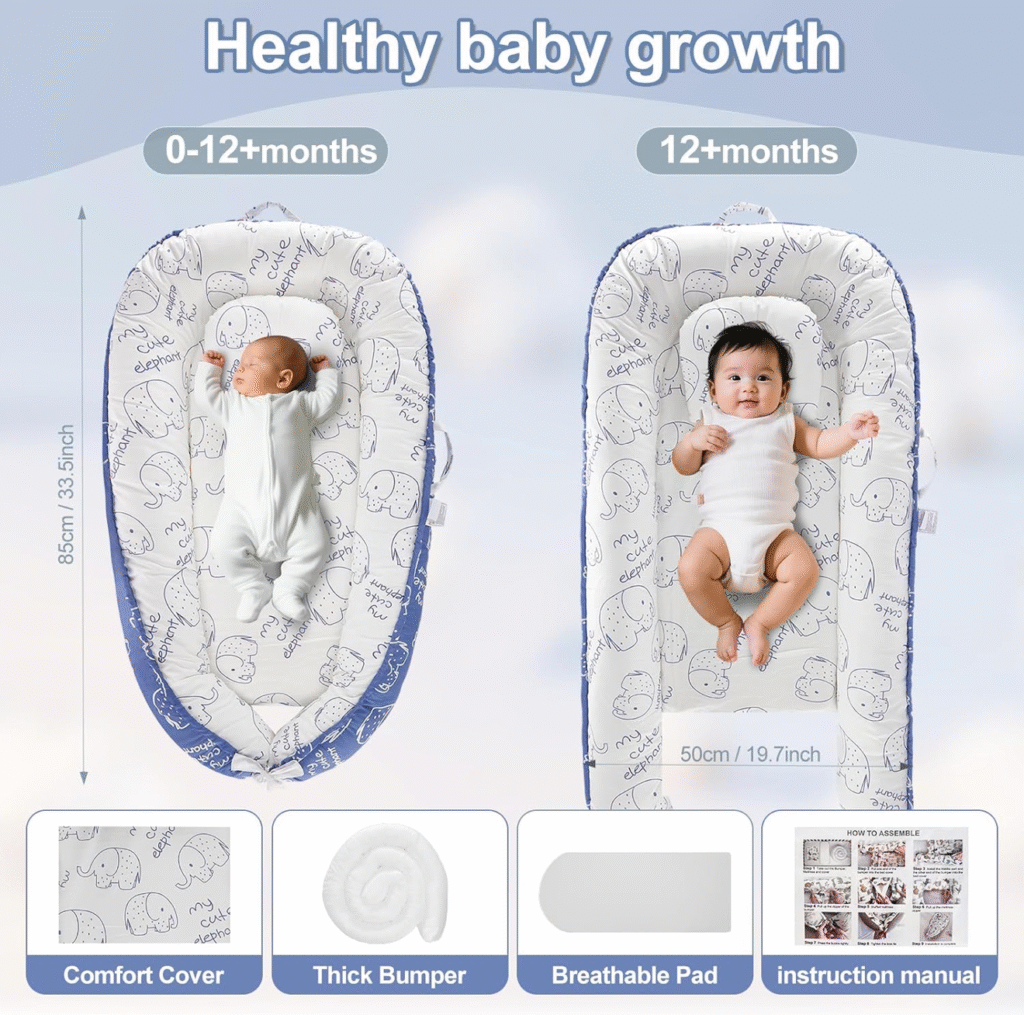 🧼 Funda removible con cremallera – El diseño con cierre permite retirar la funda fácilmente para lavarla. Mantén siempre el nido limpio y fresco.